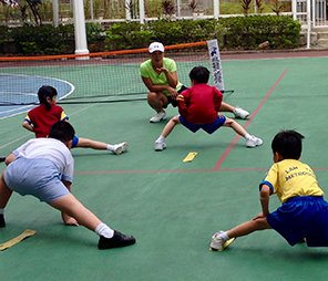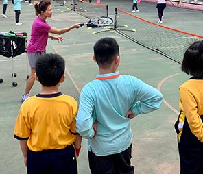 教授網球運動的步法,接、發球的手法,對打時注意事項,運動時的安全守則等。